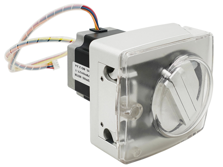 该产品是由伺服步进一体电机和TH152泵头等组成。TH152是一款新型医疗用弹簧泵头,外壳采用铝合金材料,泵盖采用高透明工程塑料,便于观察运行情况自适应卡管方式,有两个不锈钢滚轮转子,可提高软管使用寿命,泵头自适应管卡,可适用硅胶管,PVC管等;泵头有手动操作装置和安全保护装置,装管拆管方便,可用于血液透析,脉冲冲洗等行业。